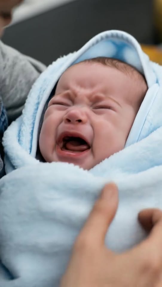At that moment, the baby woke up and started crying loudly. The woman tried to calm him, but her hands were shaking and she couldn’t manage it.