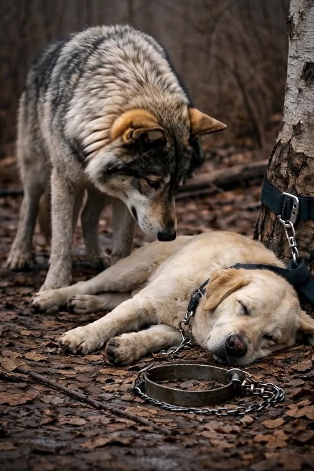 A man took his dog into the forest and tied her to a tree, hoping to get rid of her. But no one could imagine what the wolf would do to the dog 😱😨