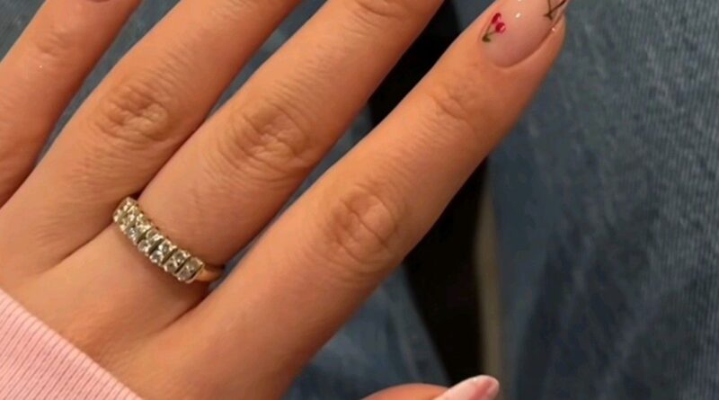 Simple bridal almond nail inspo | floral design | medium length | almond shape | nude nails