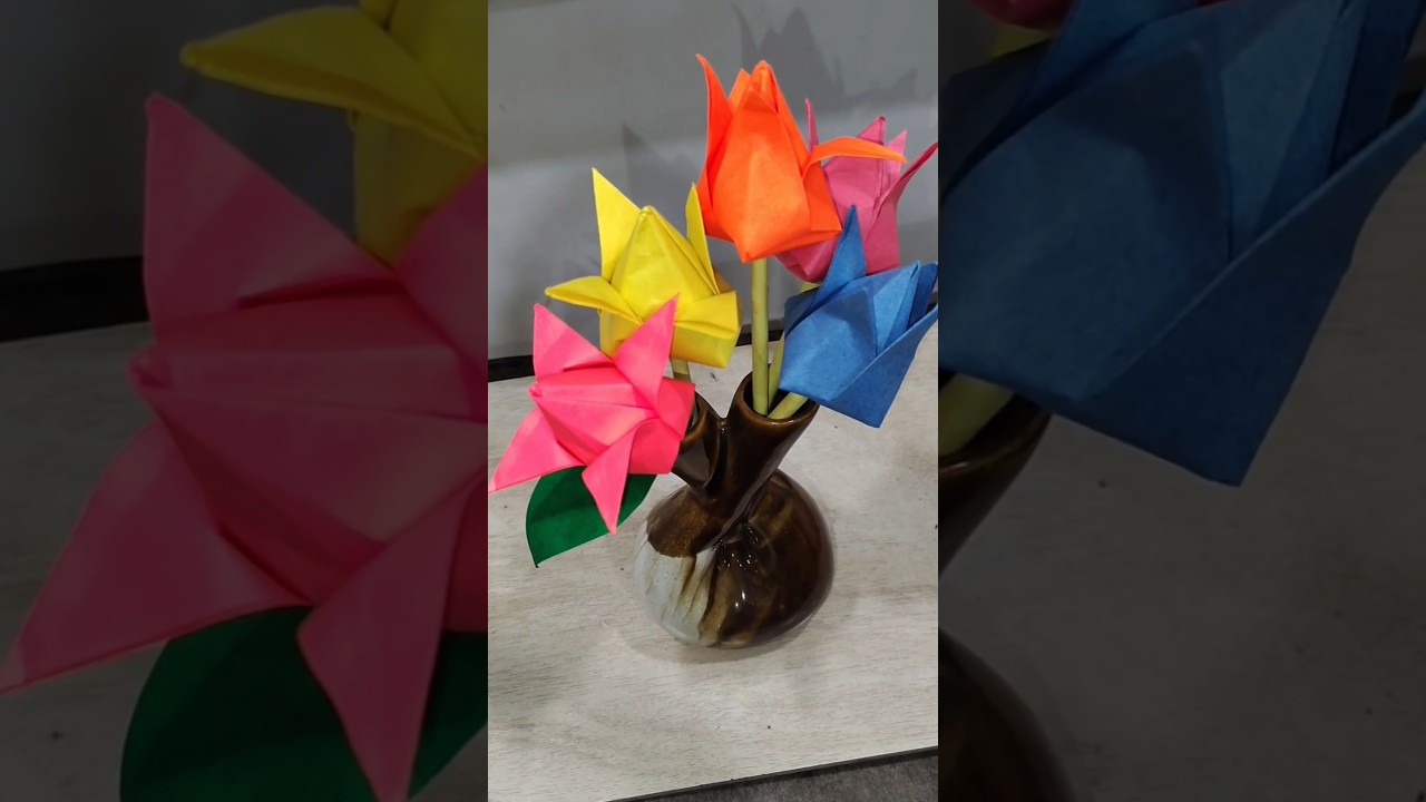 Tulip flower making with paper #diy tulip flower craft ideas #paper flower making ideas#papercraft #ytshorts … source