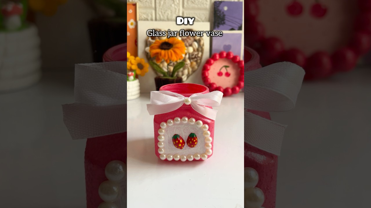 Diy glass jar flower vase 🧿🌷 | cute home decor #craft #craftideas #flowervase #glassjar #artsy